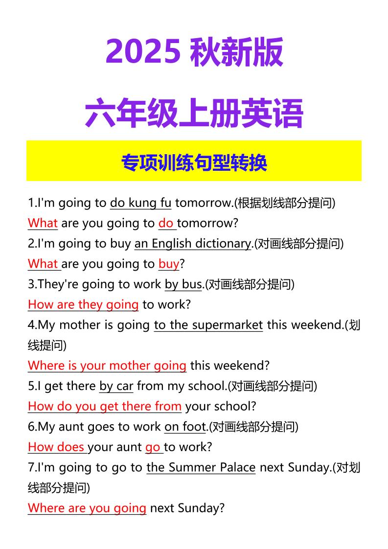 【2025秋新版】六年级上册英语英语句型转换方法大全