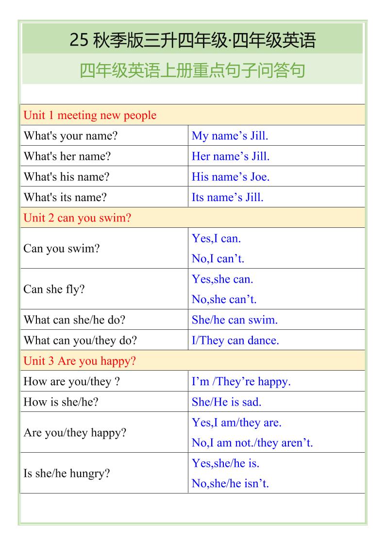 【2025秋新版】四年级英语上册《期末必考句型》归类!