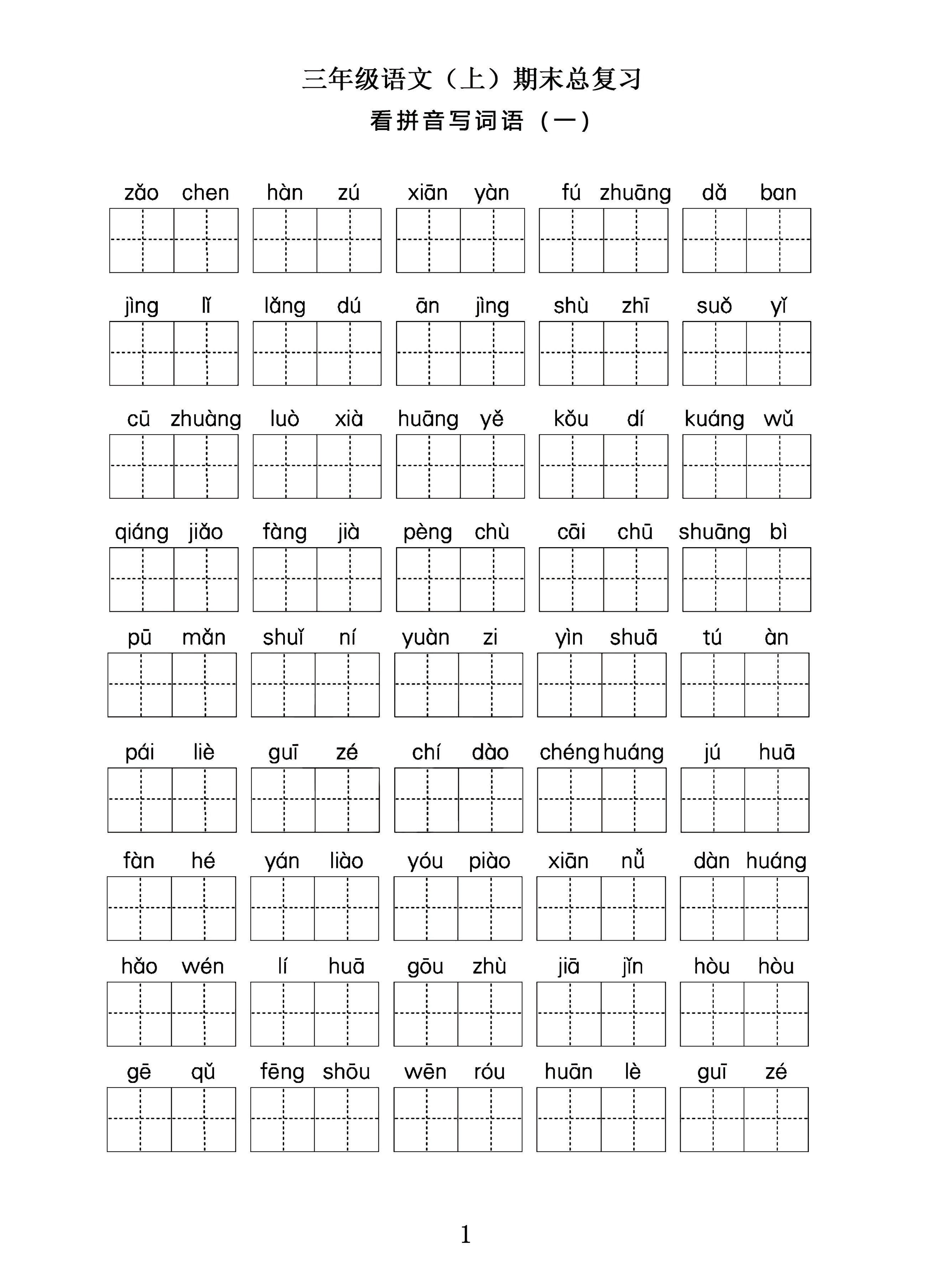 三年级语文上期末总复习——看拼音写词语。