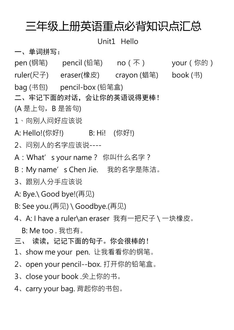 三上英语(译林三起点)单元考点梳理表(语音+单词+句型)