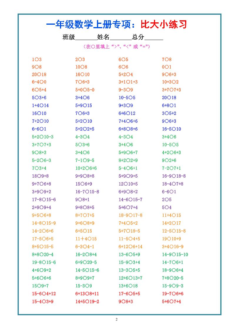 首页 > 全部 > 数学 > 一上数学比大小专项练习题(共3组)