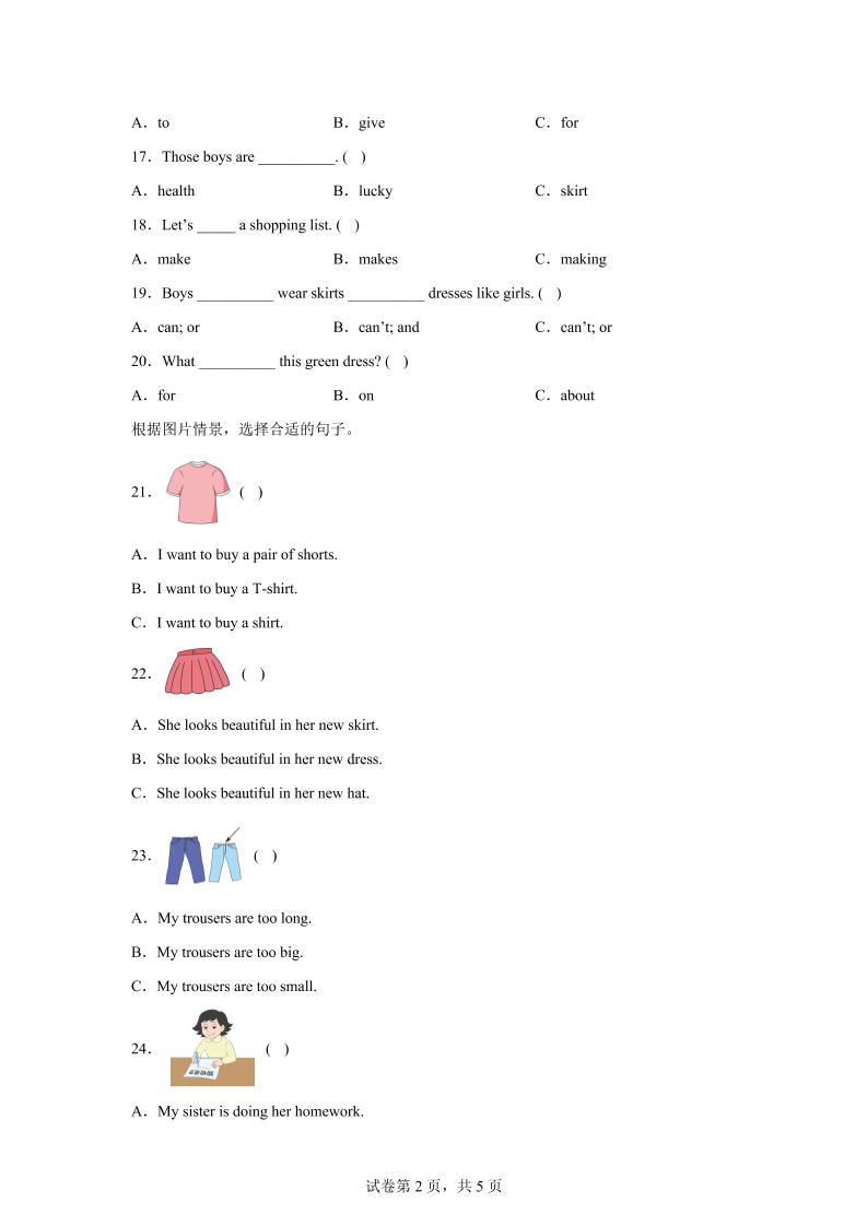 首页 > 全部 > 英语 > 闽教版英语六年级上册Unit4PartB练习卷