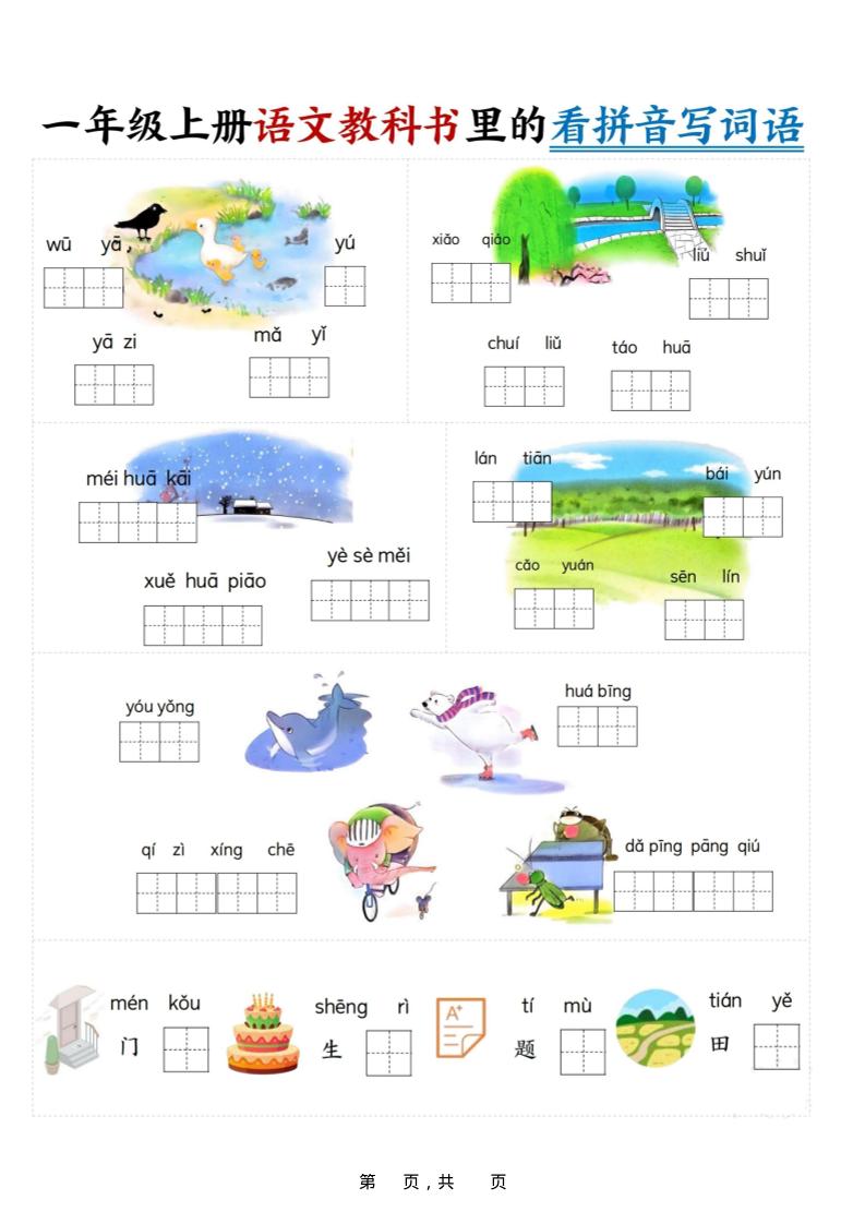首页 > 全部 > 语文 > 新一上语文教科书里的看拼音写词语(16页)