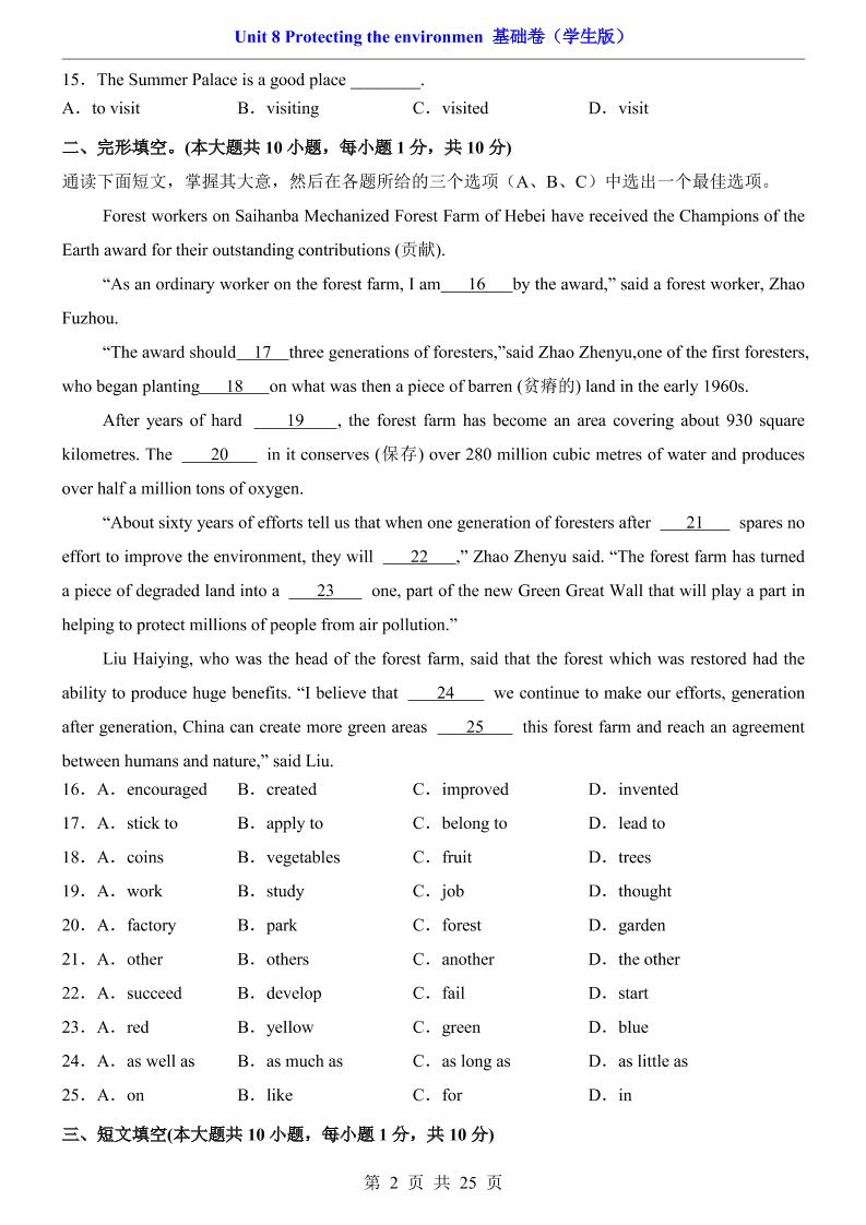 首页 > 全部 > 英语 > 八年级上英语Unit8基础卷(冀教版)