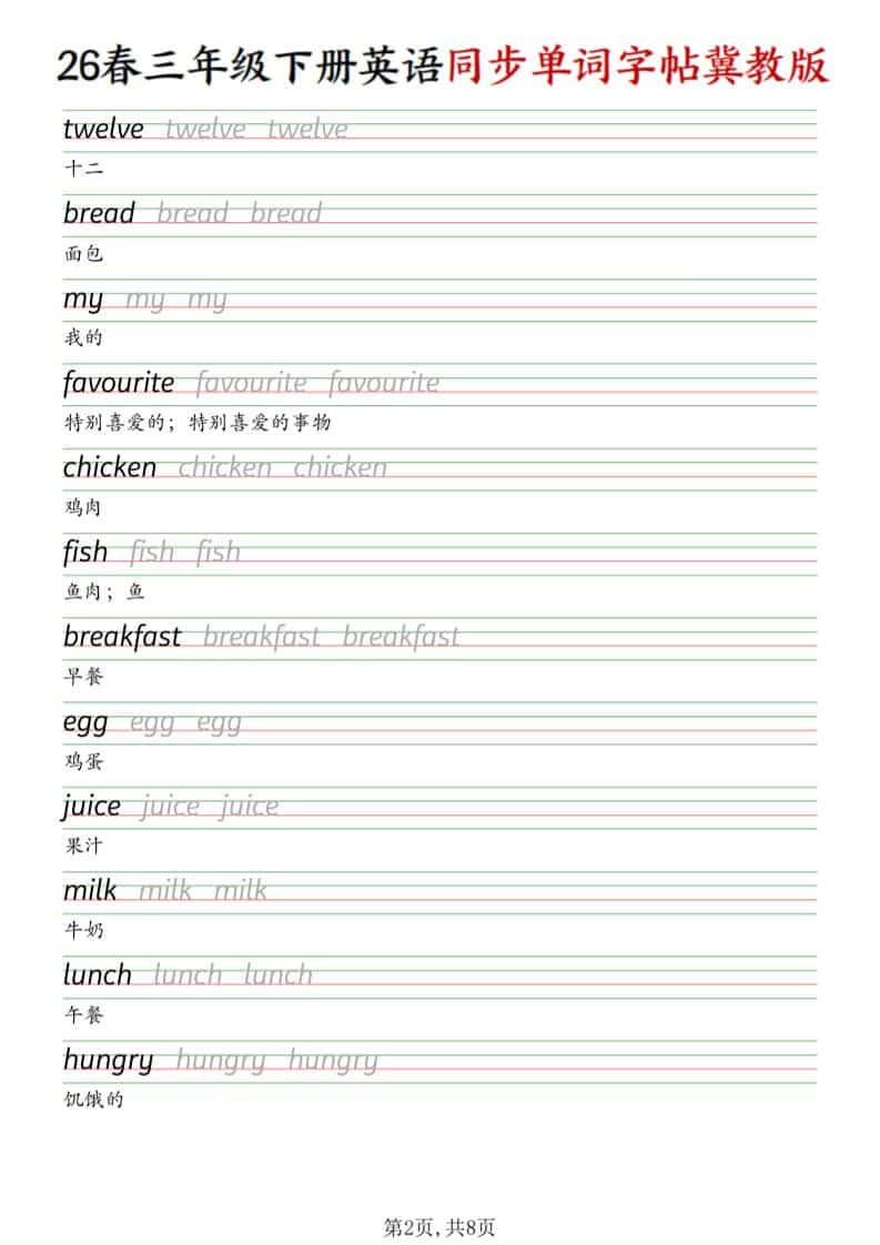 三年级下英语同步单词字帖《冀教版》